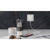 Deze compacte lader van 41,5 mm bij 47,5 mm en een dikte van slechts 63 mm kan gemakkelijk plat tegen de muur achter meubels of moeilijk te bereiken plekken worden aangesloten op een stopcontact. Hij heeft bovendien het perfecte formaat om in een zak of tas gestopt te worden, wat betekent dat je op elke bestemming snel kunt opladen.Specificaties