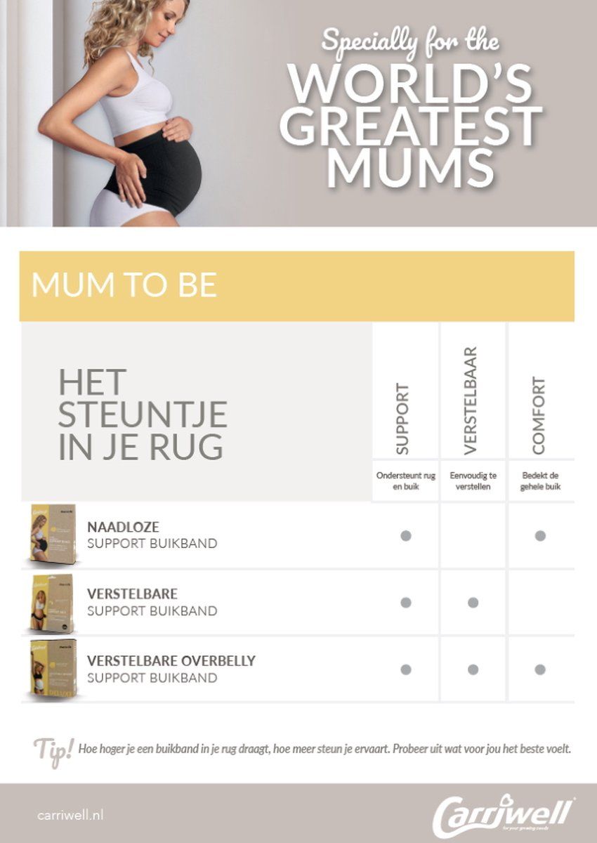 Carriwell heeft drie verschillende buikbanden in het assortiment. Deze variant geeft medium support en kan de hele dag gedragen worden.
