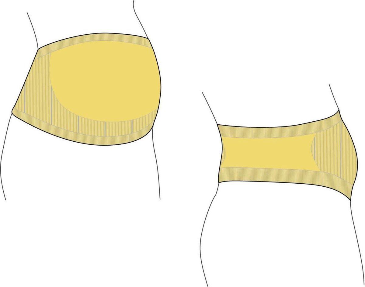 Deze band draag je over je slip. Je stapt er eenvoudig in: trek simpelweg de band zo aan dat het smalle deel op je rug zit, en het rekbare deel over je buik.