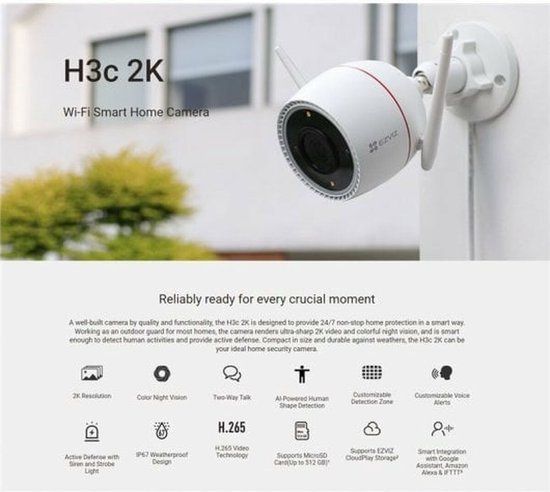 Ezviz H3C Beveiligingscamera - Wifi - 2K - Nachtzicht 30m - IP67 - 2weg audio - SD Kaart Opslag - Wit