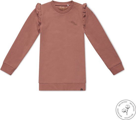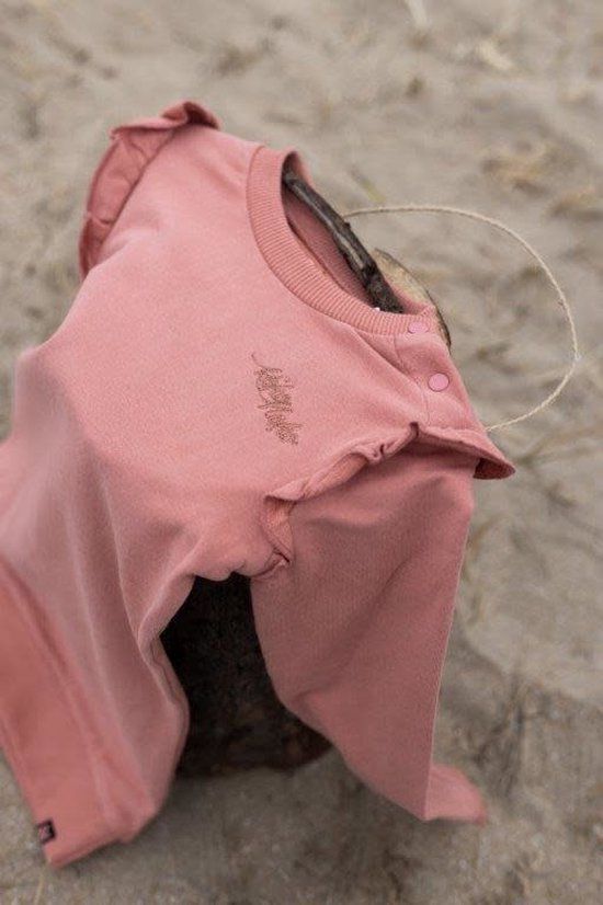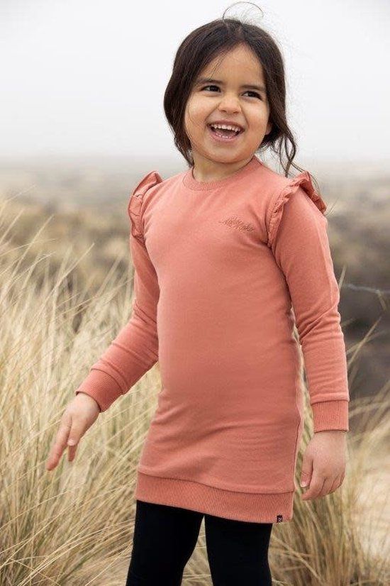 Koko Noko jurk gemaakt van biologisch katoen. De oudroze jurk heeft lange mouwen en ruffles op de schouders.Specificaties