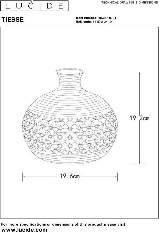 • Afmetingen: Ø19,6 cm \ H.19,2 cm