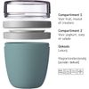 Mepal Lunchpot Ellipse in de kleur Nordic green. Deze groene muesli beker to go van Mepal is één handig product om je lunch of tussendoortje mee te nemen, maar heeft twee verschillende compartimenten om de verschillende ingrediënten gescheiden te houden. Bijvoorbeeld de yoghurt en de muesli of fruit zitten in een aparte container, waarbij de deksel van de yoghurtbeker niet de bodem van de mueslicontainer is. Door middel van een eenvoudige draaibeweging scheid je de twee compartimenten om de ingrediënten te mixen. Dé oplossing om geknoei tijdens het mengen te voorkomen. Het is de eerste oplossing die super makkelijk is in het gebruik.