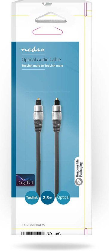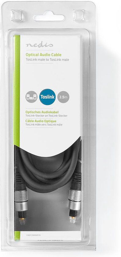 Sluit een audioapparaat, zoals een game console, DVD of Blu-ray-speler aan op een versterker met deze digitale Nedis optische audiokabel met TosLink-connectoren.Specificaties