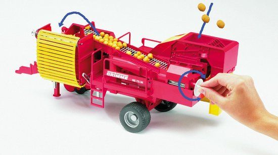 Bruder Aardappelrooimachine-aanhanger. Van hoogwaardige kunststof. In modelgebaseerd design met talrijke realistische speelfuncties. Geschikt om zowel binnen als buiten mee te spelen. Lengte: ca. 49 cm.Specificaties